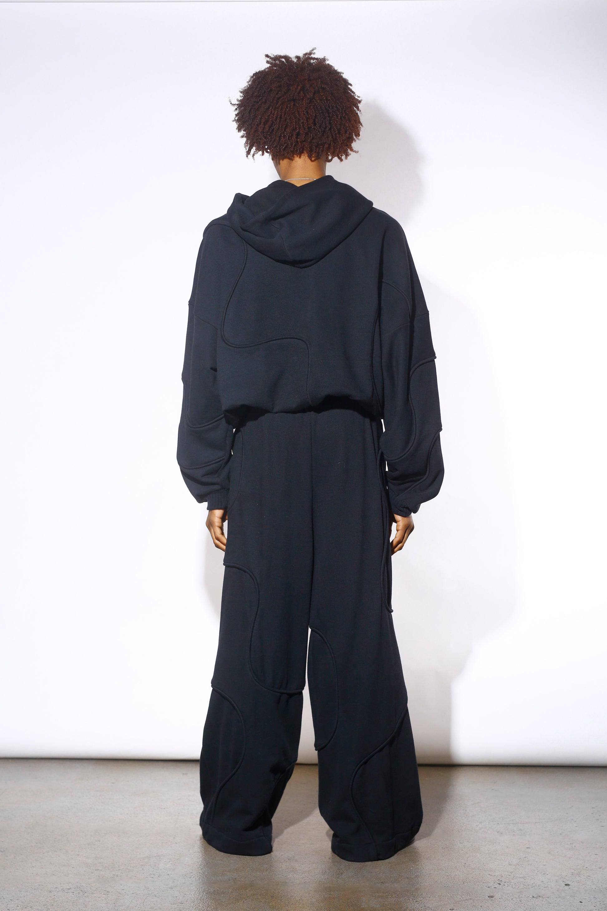 Relaxed hooded sweatshirt made from heavy terry with swirl corded detail.